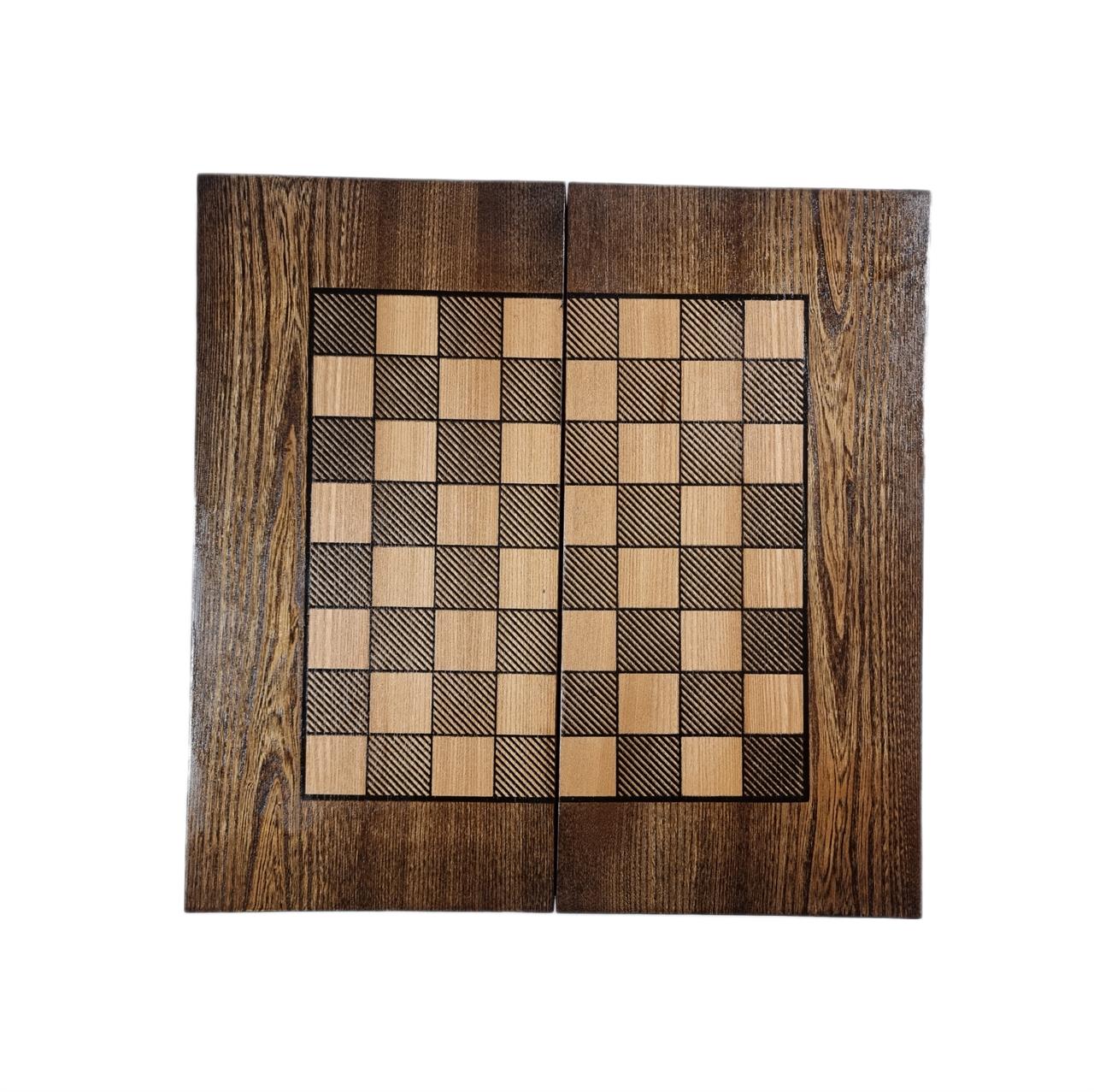 تخته نرد چوبی فوق ساخته شده از چوب درخت کاج است. دو سمت سطح بازی دارای طرح فروهر است که بر اصالت محصول افزوده است.